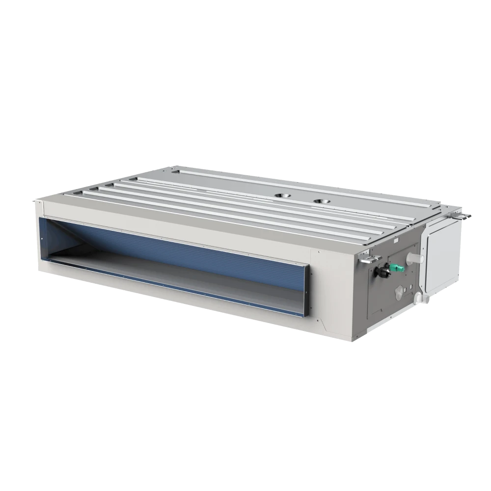 Сплит-системы канального типа выполнены в ультратонком форм-факторе: их толщина составляет всего 245 мм. Базовая комплектация уже включает дренажную помпу (способную поднимать конденсат на высоту до 1200 мм) и проводной пульт управления.